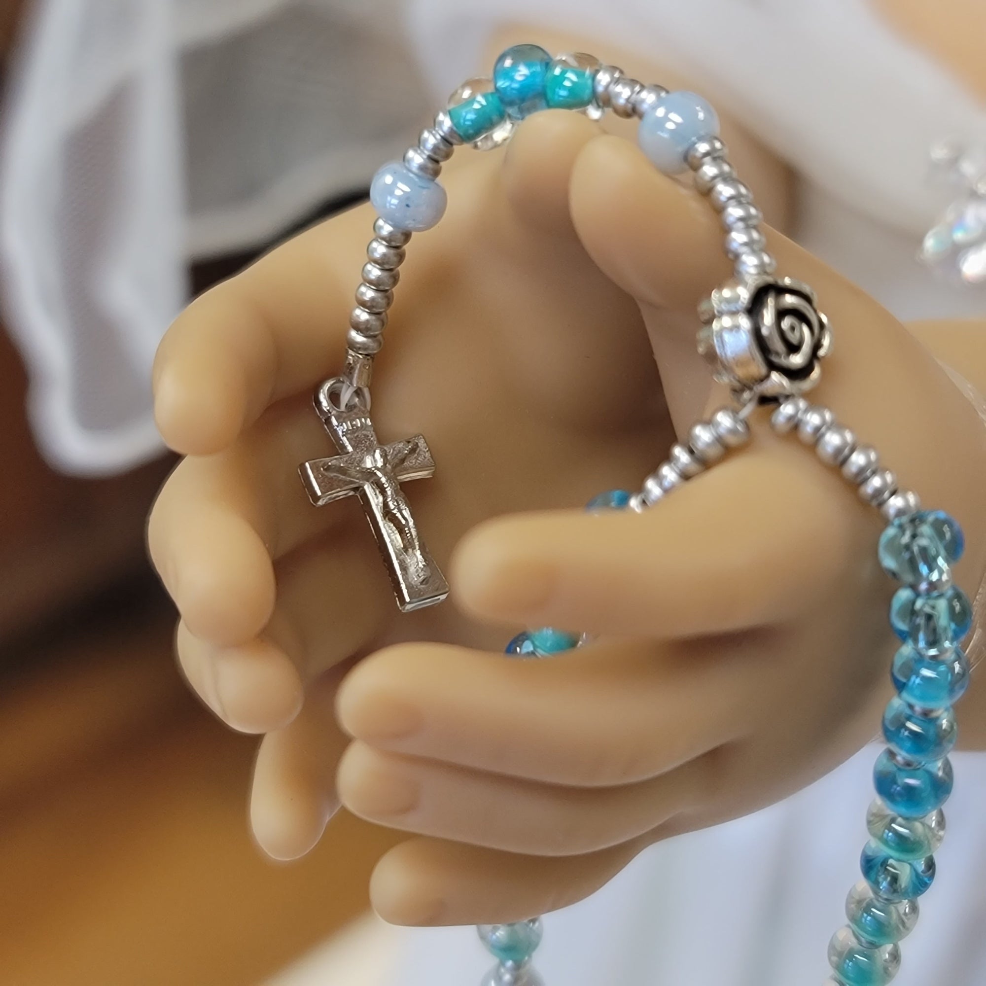 Doll Rosaries - Wipe with a barely damp cloth to spot clean, then wipe with a dry cloth to ensure no moisture remains.